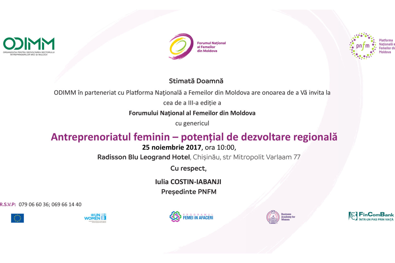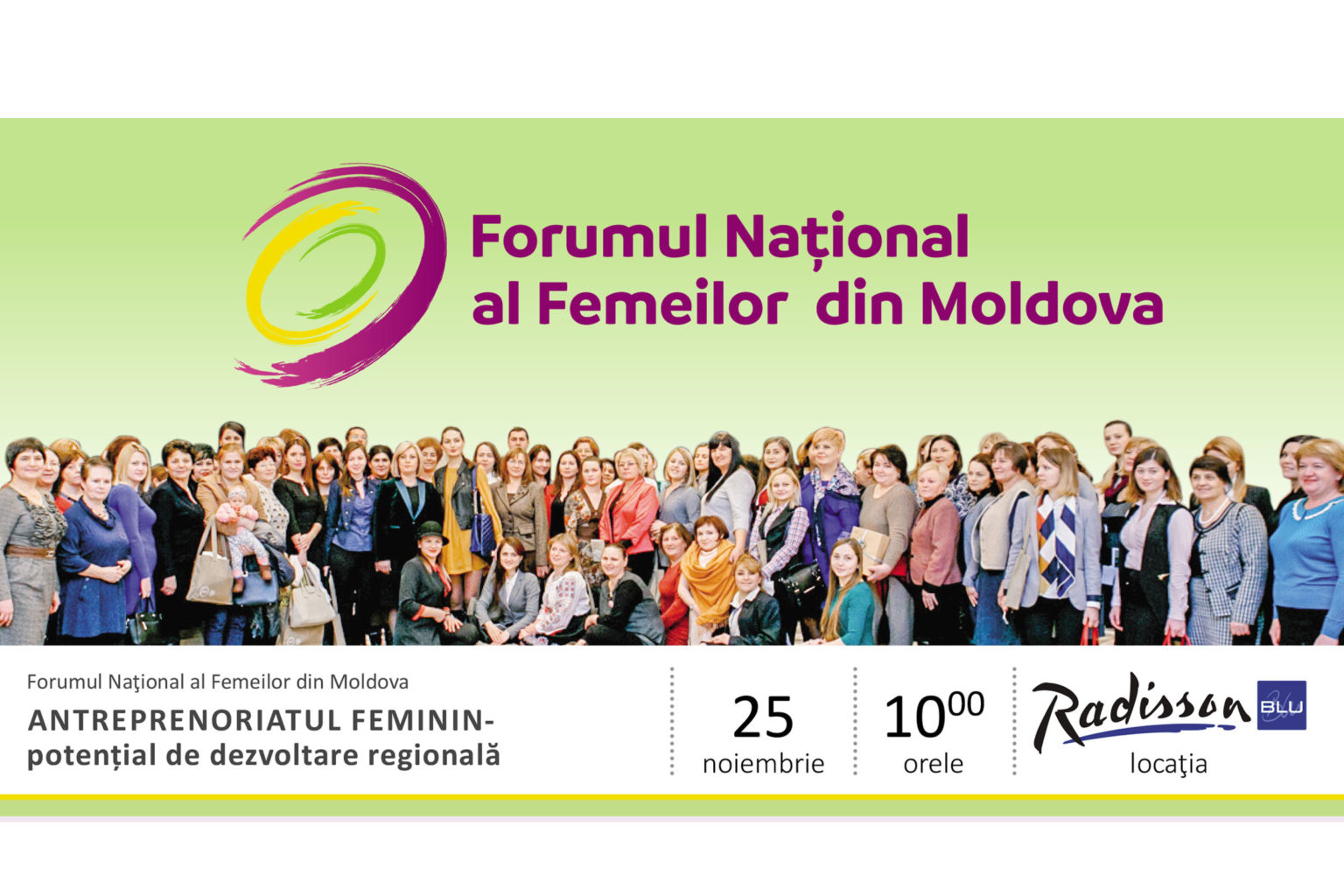 Platforma Națională a Femeilor din Moldova cu Organizația pentru Dezvoltarea Sectorului Întreprinderilor Mici și Mijlocii organizează în data de 25 noiembrie 2017 cea de a III-a ediție a Forumului național al Femeilor din Moldova cu genericul ”Antreprenoriatul feminin – potențial de dezvoltare regională”. Forumul își propune ca scop prezentarea portretului femeii antreprenoare din Republica Moldova